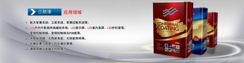 全球领先的三防综合方案解决商、国际三防标准的缔造者——东莞市三茗化工科技有限公司,长期以来一直致力于三防漆产品及相关配套设备的研究、开发、生产和销售,是一家在三防漆技术方面拥有全球领先水平的科技型企业,我们的三防漆产品在诸多领域都已达到国际领先水平,并在同行业中唯一获得军方认证的企业。 三防漆应用领域 一、航天军事系统:卫星系统、军事控制系统等;